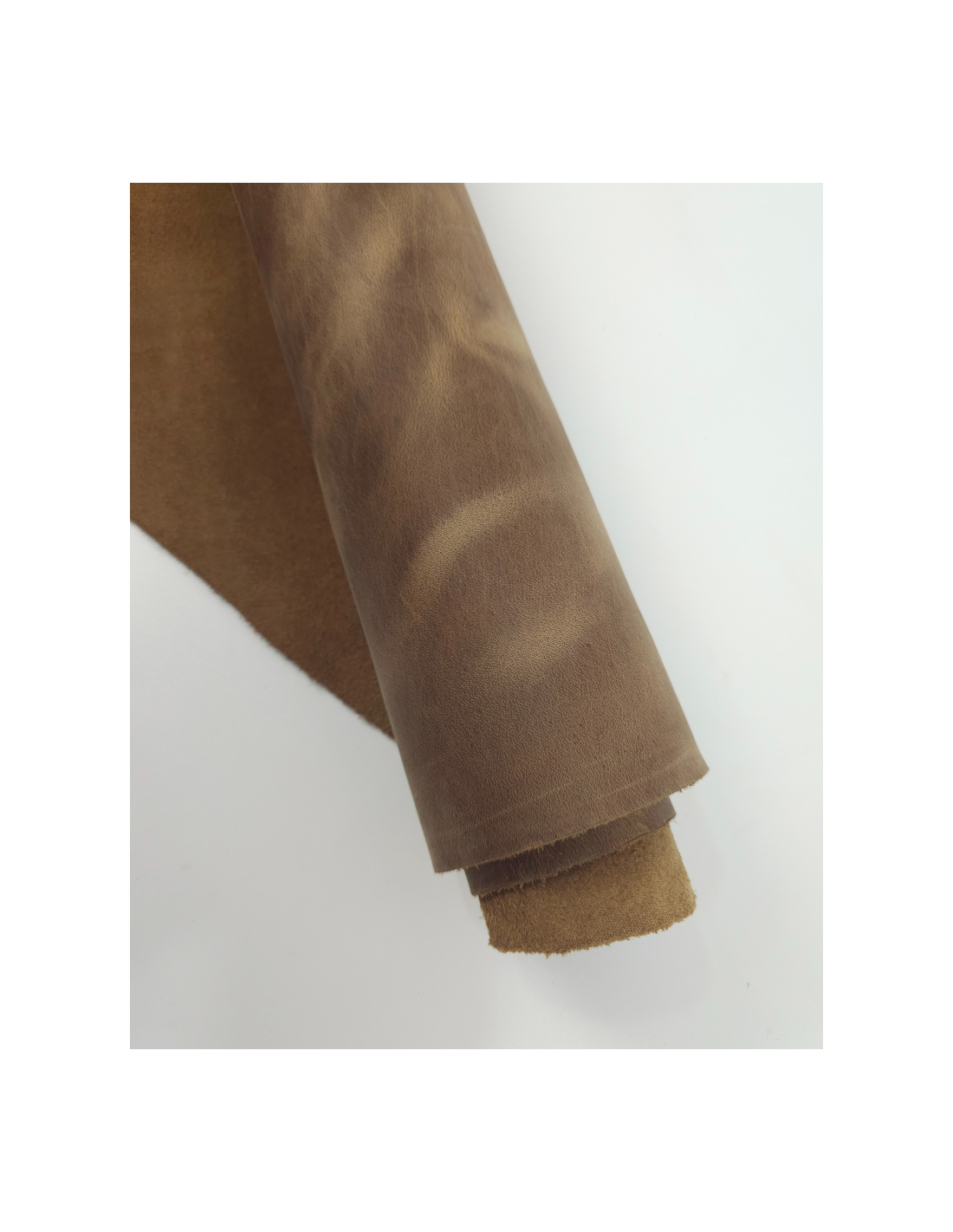 This a buffed oil rustic leather! We achieved the rustic pull up effect using a combination of oil and wax. The oil gives a fantastic touchness and fat feeling on the hand! We are talking on the a rustic and antique best seller article in the world!
